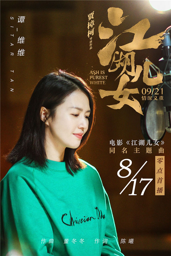 谭维维音域宽广,大气磅礴的声线与音乐表现力有目共睹,其音乐调性与银幕大片格外契合,她也因而陆续获邀为《长城》《寻龙诀》《X战警:天启》《相爱相亲》《盗墓笔记》《绣春刀》等电影献声主题曲宣传曲,此次为贾樟柯导演的最新电影力作《江湖儿女》献唱同名主题曲则是又一斩获,也获得了片方及导演的高度认可。《江湖儿女》将于9月21日中秋档与全国观众见面,届时大家即可在电影院领略到谭维维的美妙歌声。