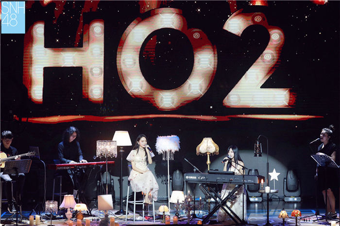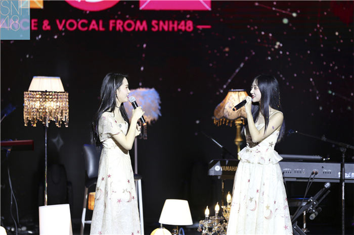 紧接着,SNH48小组合HO2成员冯薪朵和陆婷亮相舞台,带来了一首曲调宛转悠扬、如梦似幻的《笔下之城》,两人默契的和声令现场的气氛渐浓。随后,《月光下》前奏缓缓奏响,悦耳的音符温婉流泻,歌如其名,两人的轮廓在灯光的映衬下愈发温柔,甜蜜的声线拨动着每一位观众的心弦。