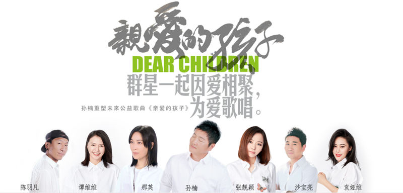 此外,今天也公布了跟孙楠共同演唱这首歌的六位内地乐坛重量级人物,分别是:那英、沙宝亮、陈羽凡、张靓颖、谭维维、袁娅维。在公布的海报中,歌手们都统一身着简单白T回归本真,献唱《亲爱的孩子》暖心助力公益。