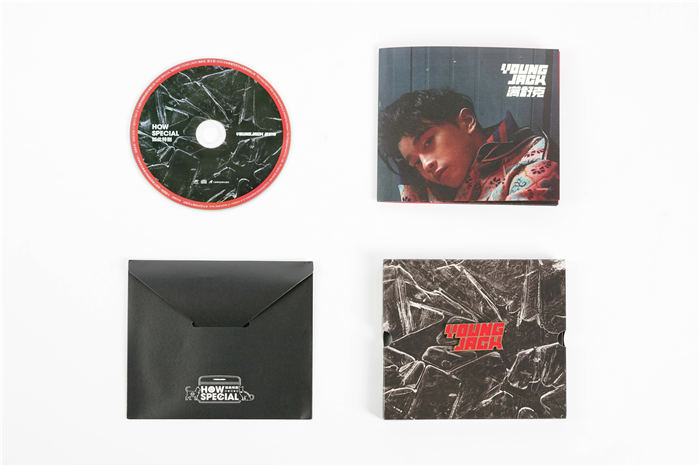 此次EP实体设计由最酷的MVM视觉厂牌操刀,双版本带来别样体验。普通版采用极薄设计,质感带有舒克特有的urban风格,简洁不失新意。纪念版EP则更为special,透明封套里看似平面的“Young Jack”金属 Logo,实为一枚可拆下的别针,心意十足。CD盒如一份小心珍藏礼物,层层嵌套,打开最底层信封里面的CD ,如收到一封信笺,期待被你拆开,共同品读和感悟。