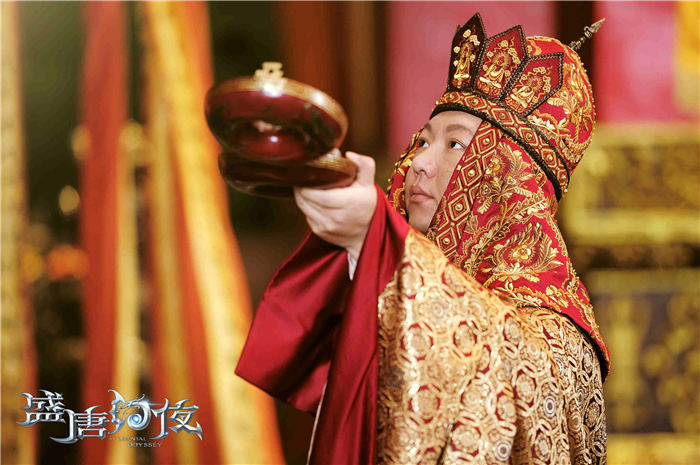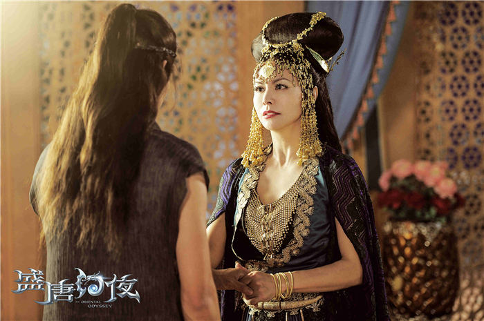 全新解锁的角色剧照中,亦正亦邪的天枢手持藤扇,掐指谋算的姿态仿佛洞察一切,披发造型“稳重带皮”颇具反差萌;而与天枢势如水火的国师天桥,则红袍金绣官服加身,不可一世、立场神秘;饰演玄奘的印小天以剃发造型现身,坚毅目光尽显大师风范。在找寻天珠的势力中,天后一派不容忽视,家事国事忙不停的武则天,锦衣华服、珠翠围绕,一代女帝的霸气之姿不动自现;而娑罗国的“霸气女王”则是男主角穆乐的母亲娑罗王后(田丽饰),她充满浓厚异域风情,造型格外吸睛。