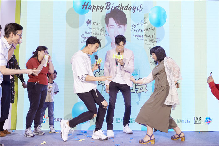 现场,在吴尊分享飞轮海时期照片期间,辰亦儒推着蛋糕唱着生日歌出现,给吴尊送上惊喜礼物,一份来自飞轮海成员的生日祝福。对此,吴尊深受感动,讲诉了飞轮海时期许多有趣的故事,并邀请辰亦儒一起为大家献上一首《越来越爱》。歌曲结束后,粉丝也主动响应,上台模仿了极为有名的“辰亦儒跪地求婚吴尊”事件,引得现场笑声不断。有感粉丝们的心意,吴尊还带上了婚纱头饰,回溯旧日时光。随后,粉丝们表示为响应吴尊积极参与公益事业的号召,大家联合以吴尊和NeiNei的名义种植了一片爱心林,希望能和吴尊一样奉献自己的爱心,并将公益证明作为生日礼物送给吴尊。