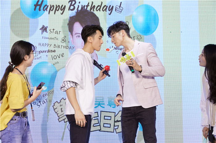 生日会过半,来到了极具互动性的“首届吴尊挚爱运动会”环节。吴尊和辰亦儒分别出任两个方队的队长,各自带领5位粉丝完成每个项目的比拼。两人还互相battle,表示要为粉丝赢下这次胜利。“怪力夹气球”、“爱的勺子接力赛”、“真假难辨”三个游戏趣味十足,大家卖力比赛,欢呼笑语不断。吴尊还为获得胜利的粉丝准备了奖品,全力回馈粉丝的热爱与支持。