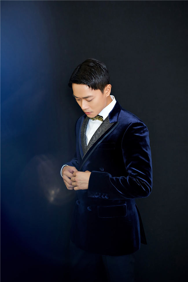 曹骏时尚造型出席活动 丝绒暗花纹西装复古气韵浓
