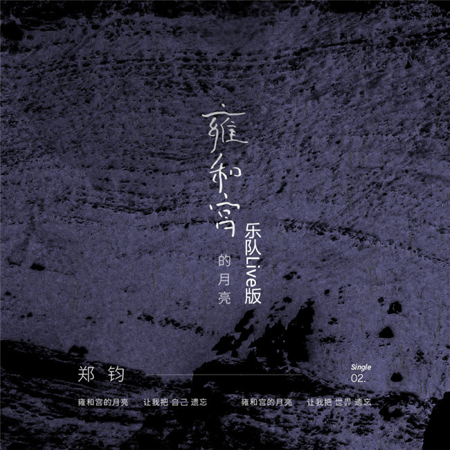 第二波主打《雍和宫的月亮》从景物出发,温婉静谧的诉说人间禅意,繁华似锦已略过,世间万物在心中。歌曲封面充满了禅意与中国传统文化,封面底纹可以理解成是月亮表皮、水。上面的不规则处理,更像是岁月留下的痕迹。整张封面主要运用了紫色、黑色、灰色。紫色的神秘且富贵,又略带种忧郁的色彩。黑色,在古代中国文化中,黑色是北方的象征,代表“水”,五色之一。整体底纹又有水的形态,有如水一样至柔之中的至刚、至净、能容、能大的胸襟和气度。灰色穿插于黑白两色之间,更像是这首歌给人的感觉,经历了种种之后的人生感悟。
