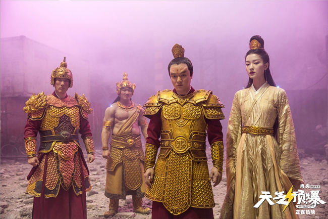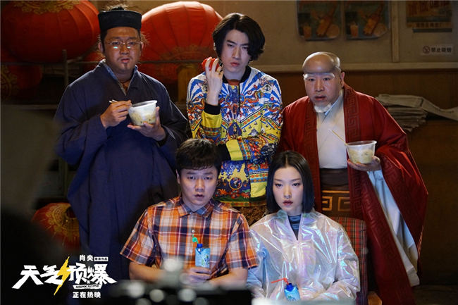 在影片全新曝光的“来电的感觉”海报中,肖央现代西装打扮在都市街景下邂逅“下凡”电母杜鹃,电母还现场“发电”在广告牌上给马乐“在线直播”,展现了一副祥云宝宝和冷空气宝宝“斗法”的“神仙世界”。海报整体画面既有神话感,又和现代背景完美结合,肖央导演用他充满“童心童趣”的想象力,通过马乐这个角色筑起了凡人和“神仙”沟通的桥梁,直观地向观众展示了《天气预爆》充满奇幻色彩的“都市神话”世界。