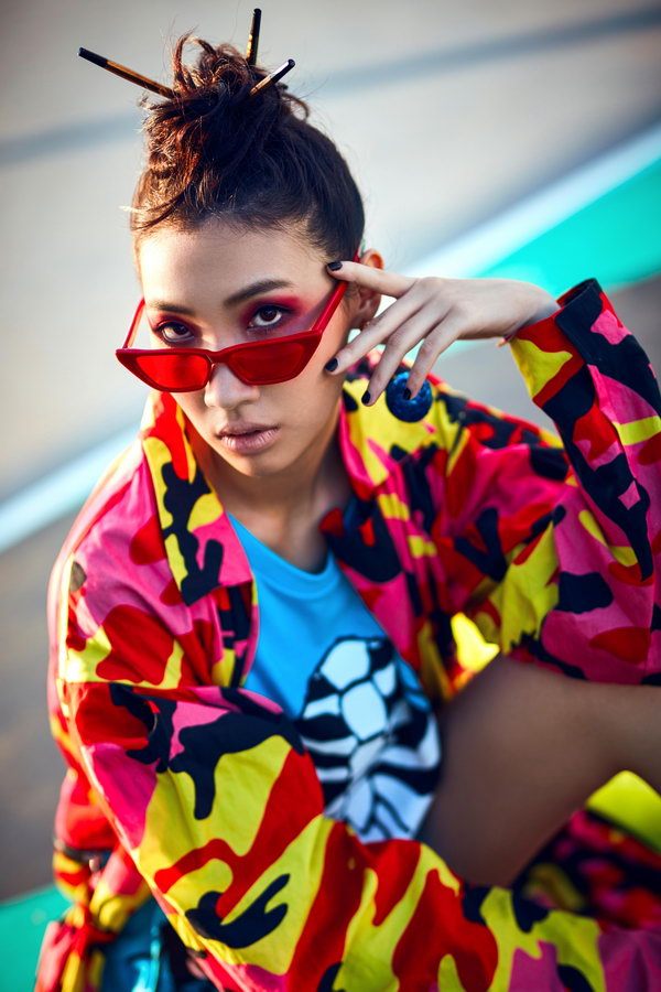 而在MV造型上,Karencici穿着鲜艳蓝色骷髅背心搭配嘻哈红黄迷彩外套,露出细直的大长腿,发型上也用足心思打扮成嘻哈春丽头,插上三支筷子,KARENCICI开玩笑地说:“头上这边三支筷子,我饿了的时候可以直接拔下来吃便当,很环保”。除此之外,MV特别取景于淡海新地标艺术篮球场,时尚艺术味十足,因该篮球场十分欣赏Karencici的音乐,使她为第一个使用球场拍摄MV的艺人。