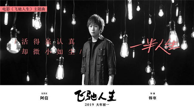 据悉,主题曲《一半人生》由韩寒作词,阿信倾情演绎,集作家、导演、赛车手身份为一体的韩寒此次为自己执导兼编剧的第三部电影《飞驰人生》主题曲亲自填词,可以说是十分用心,主题曲邀请到五月天主唱阿信倾情献声更是给广大影迷带来无限惊喜,五月天自出道以来,给许多人带来了无数关于青春、热血的回忆,作为一个时代的标签,五月天的歌总是用最简单、纯粹的歌词和旋律,表达着最真实和触动的情感,凭借一首又一首经典歌曲,成为了无数人青春的代名词。