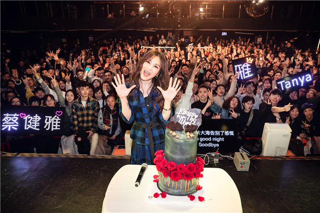台上粉丝刚刚下场,Tanya蔡健雅又收获了一个大大惊喜:到场所有人为Tanya提前庆生。以往生日Tanya都会一人去国外旅游,顺带学习烤蛋糕和面包,今年新专辑面世,公司和团队惊喜提前帮她庆生,感谢她给大家带来的十首优秀音乐作品,去回报她的爱与被爱。