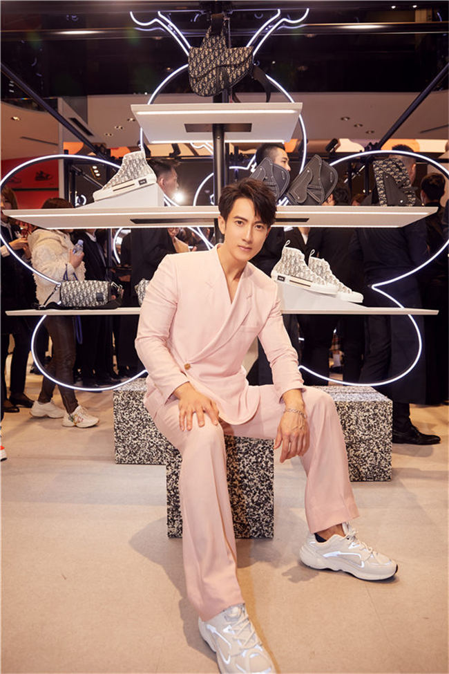 吴尊出席品牌活动 粉红西装造型绅士气质立显