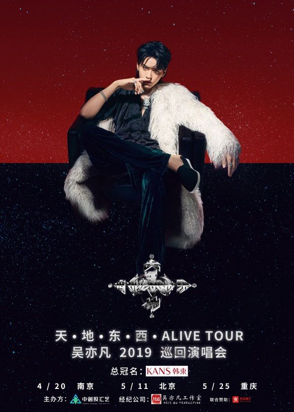历经两年多的精心酝酿,2018年11月,吴亦凡发行了个人首张专辑《Antares》。作为专辑监制、音乐制作人、词曲创作人,全方位把控专辑的吴亦凡不仅展现出了出众的创作才华、音乐想象力、创造力,同时巧妙融合东西方音乐概念与元素,唱作出了属于吴亦凡的音乐美学。此次“天·地·东·西·ALIVE TOUR吴亦凡2019巡回演唱会”,凭借百分百纯粹的“凡式”音乐闯出一片“天地”的吴亦凡,力求通过自述式的现场表达方式,为大家呈现出更加立体与多元的“凡式”视界,愈发强劲有力的“凡式”态度与“凡式”哲学也将借由演唱会的舞台逐一向大家展现。