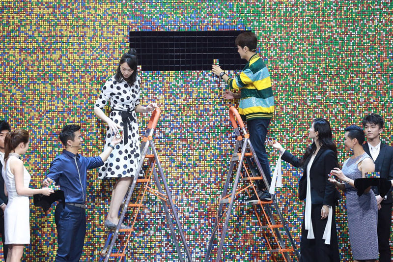 舞台呈现上,江苏卫视延续了跨年演唱会的科技质感。出现在节目中的各式道具,从大到5.7米长、4.3米高、4吨重的7500个魔方组成的魔方墙,小到扑克、魔方、金鱼、手机等极其简单的物品,以及作为气氛烘托的布景、光影,都带来精致以及震撼。还记得江苏卫视跨年演唱会上神奇无比的AR技术吗?《超凡魔术师》AR开场、AR点亮解说间、AR点亮主舞台……亦真亦幻的视效,造就了魔术世界的沉浸感和卷入感。