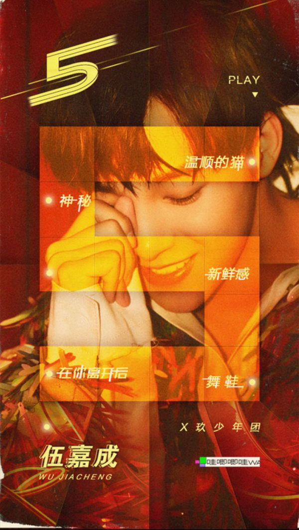 伍嘉成的迷你专辑《5》选择了复古风格,融合八九十年代流行元素和现代音乐,呈现迷幻复古的效果。在之前公开的专辑第一主打歌《神秘》,主打Funk风格,伍嘉成一身红丝绒西装和爆炸头的造型非常吸睛,在闪烁的Disco电光卡带中,向90年代的经典歌曲致敬。同样是复古曲风,《温顺的猫》却更偏活泼动感,慵懒中透着俏皮,有趣的歌词配上可爱的舞蹈,使整首歌魔性又洗脑。歌曲《新鲜感》是伍嘉成和火箭少女101的Yamy首度合作,作为90后总对事物需要保持一定的“新鲜感”,这有好有坏,会让你永远有好奇心同时又会难免浮躁。做音乐也是这样,即需要有满溢的冲劲和活力又需要在适当时静下来聆听内心,驾驭“新鲜感”而不是被驾驭。