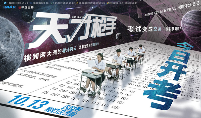 秀网娱乐讯,泰国电影《天才枪手》今日正式在内地公映并发布公映版海报、“考霸天团”版海报以及电影幕后制作特辑。影片根据2014年轰动一时的亚洲考场作弊案改编,讲述了天才学霸利用高智商考场作弊牟取暴利的故事。此前,该片在全国40城举办了超前点映,影片脑洞大开的剧情、紧张刺激的节奏以及超燃的剪辑让观众大呼过瘾。