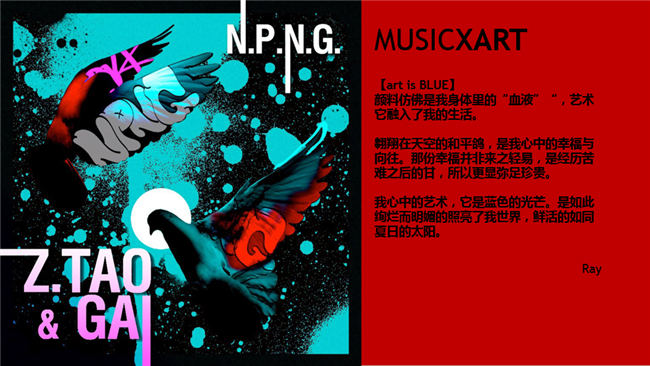 除了歌曲本身,《不劳不获》的封面设计也是该曲的一大亮点,它的设计者是来自俄罗斯的涂鸦艺术家Ray,他表示对于艺术的热爱是蕴藏在自己的基因里,而黄子韬新歌传递的正气感也是他所追求的,所以一拍即合有了这幅代表着自由和爱的艺术品。封面中白鸽羽翼上的红蓝撞色,即寓意着经历曲折后来临的幸福,这份勇气最终会支撑我们渡过困难,到达顺境。