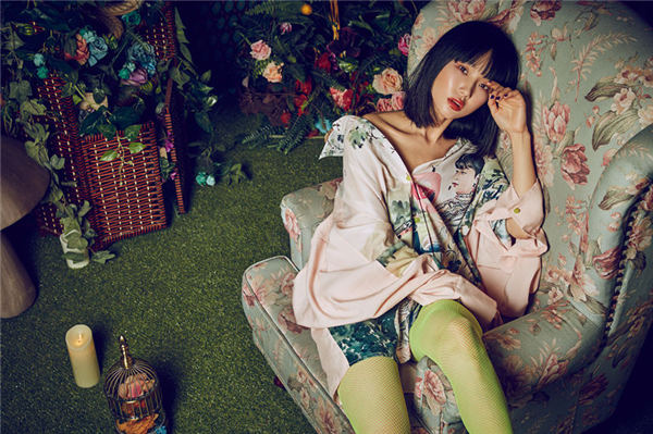 这张专辑印象非常深刻,首先从嗅觉上面,我就觉得VERY DIFFERENT,就是这是一张又好听又好看又好闻的专辑,因为拿到实体专辑的人,打开专辑就会闻到一股桃花香味,因为有一个桃花香薰卡片,它是一个我亲自参与设计的一个小礼物,它可以放在浴室里,车上等等,就是很可爱啊,因为我平时很爱生活,也挺有小小仪式感嘛,女生啊,喜欢香薰,喜欢蜡烛,那就想说专辑的话,可以有一个香薰的这样一个小礼物,上面的小兔子也是我亲自画的,然后这次也有很多跨界,就是有小礼物的跨界,然后在专辑出之前没多久,因为我也很喜欢收集各种各样的睡衣、浴袍,我觉得穿睡衣也可以外穿,穿出很时髦的感觉,穿出自我,就有跟好朋友一起设计了一款睡衣,因为我平时很爱在浴室里面边唱歌,边弹琴,而且这次专辑的封面的衣服也很陶醉,就很有像小仙女的感觉,专辑的封面也是非常有趣,是一个我很喜欢的插画师帮我设计的,灵感是来自于爱丽丝梦游仙境这本荒诞小说,我会把自己有时候幻想成音乐世界里面的爱丽丝,不是那么爱把自己放在现实的世界里面,会比较爱幻想,然后歌曲的话,就更加不用说啦,我的主打歌《醉》,这首歌的歌词,我告诉你,厉害了!作词
