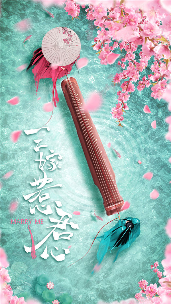 而海报在细节方面更是处处彰显剧中亮点。一把浮于水面的七弦古琴成为画面的主体焦点,古琴头尾分别是衣袂翩跹的龙跃和居沐儿,他们随着片片迎风飘落的花瓣临水而立,构成一幅犹如“一树红桃亚拂池”的人间仙景。正中间的琴弦化为红线连接在二人手中,恰如其分地点出了故事中男女主因琴结缘的前因。而清澈的水面波光粼粼,但水面之下的暗流涌动引人遐想,正如剧中一切故事都围绕着其展开的那桩悬案,参与其中的每个人都看似风平浪静,却都悄然汹涌着自己的秘密和欲望。仅概念海报的设计就如此精巧,更令人期待该剧早日播出。
