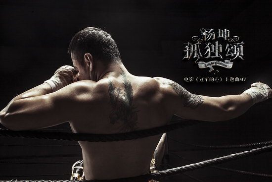 电影《冠军的心》讲述了杨坤饰演的职业拳击手谭凯,因意外失手把自己最好的兄弟打死了,自此之后谭凯便陷入到深深的自责中无法自拔。电影角色与MV中咏唱孤独的杨坤时空交错,杨坤的歌声赋予了谭凯新的生命力,电影里的谭凯同样也给予了杨坤全新的领悟。在电影里谭凯一直深陷于愧疚、痛苦的泥潭之中无法自拔,在歌曲里杨坤也一直在不断唱着“那么忍住寂寞就是,英雄;如果孤独真的值得,歌颂”。作为英雄必须面对的就是无人认同的孤独,杨坤是孤独的,因为他在坚守内心的执着,谭凯也是孤独的,因为他有一颗孤独的冠军的心。